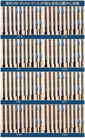 中心成像表現(xiàn)來看,全開光圈時銳度相當(dāng)可以,當(dāng)光圈受到f/2.8時,成像表現(xiàn)已非常不錯。不過從f/16開始,由于衍射作用的緣故,成像衰減較為明顯,這也是大多數(shù)鏡頭都會存在的問題。另一方面,此款鏡頭的邊緣成像情況帶來了十分驚艷的表現(xiàn),即便在全開光圈時,成像質(zhì)量也足以令人滿意,而且畢竟是邊緣位置,其成像衰減并沒有十分明顯,與中心成像的表現(xiàn)十分接近。這是也是令人驚喜之處??梢哉f這支鏡頭在光圈全開的情況下完全可以放心可用。